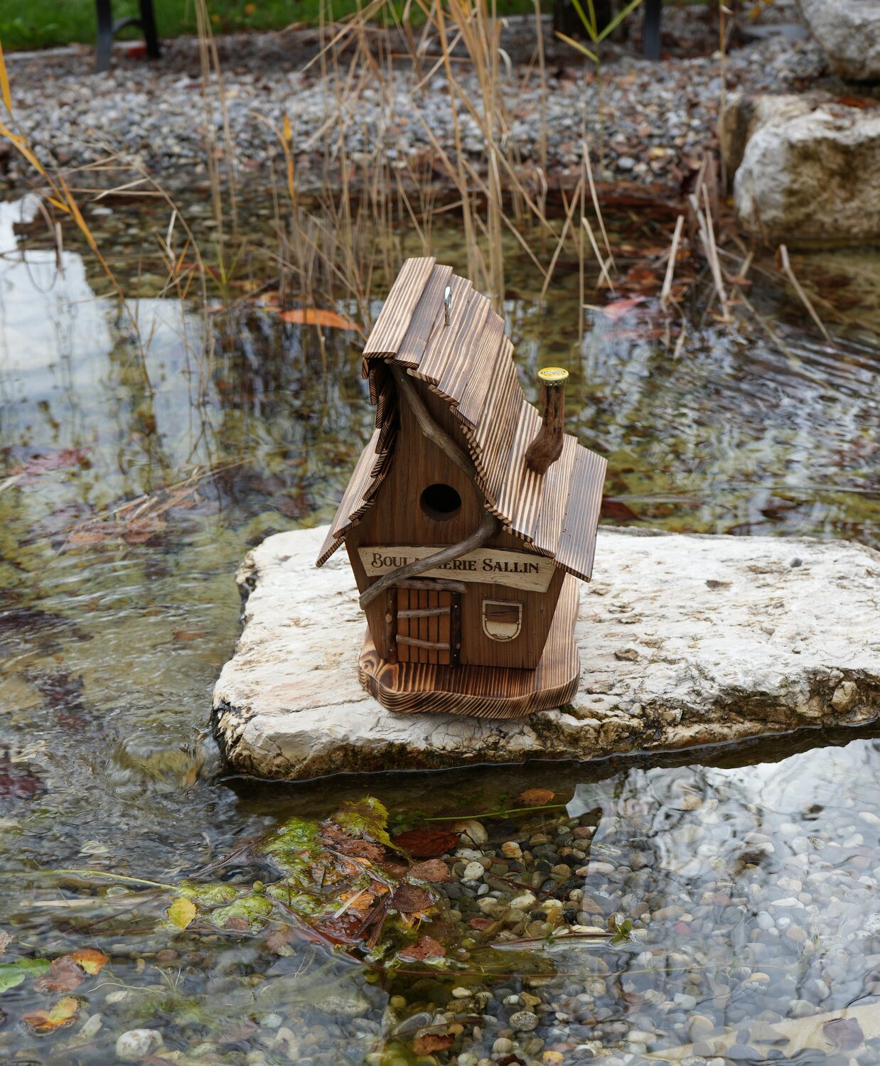 Branche perchoir, cheminée, porte et plaquettes gravées