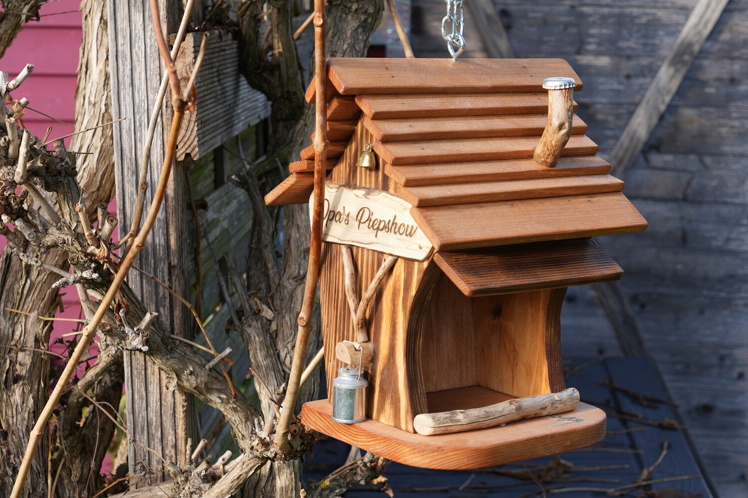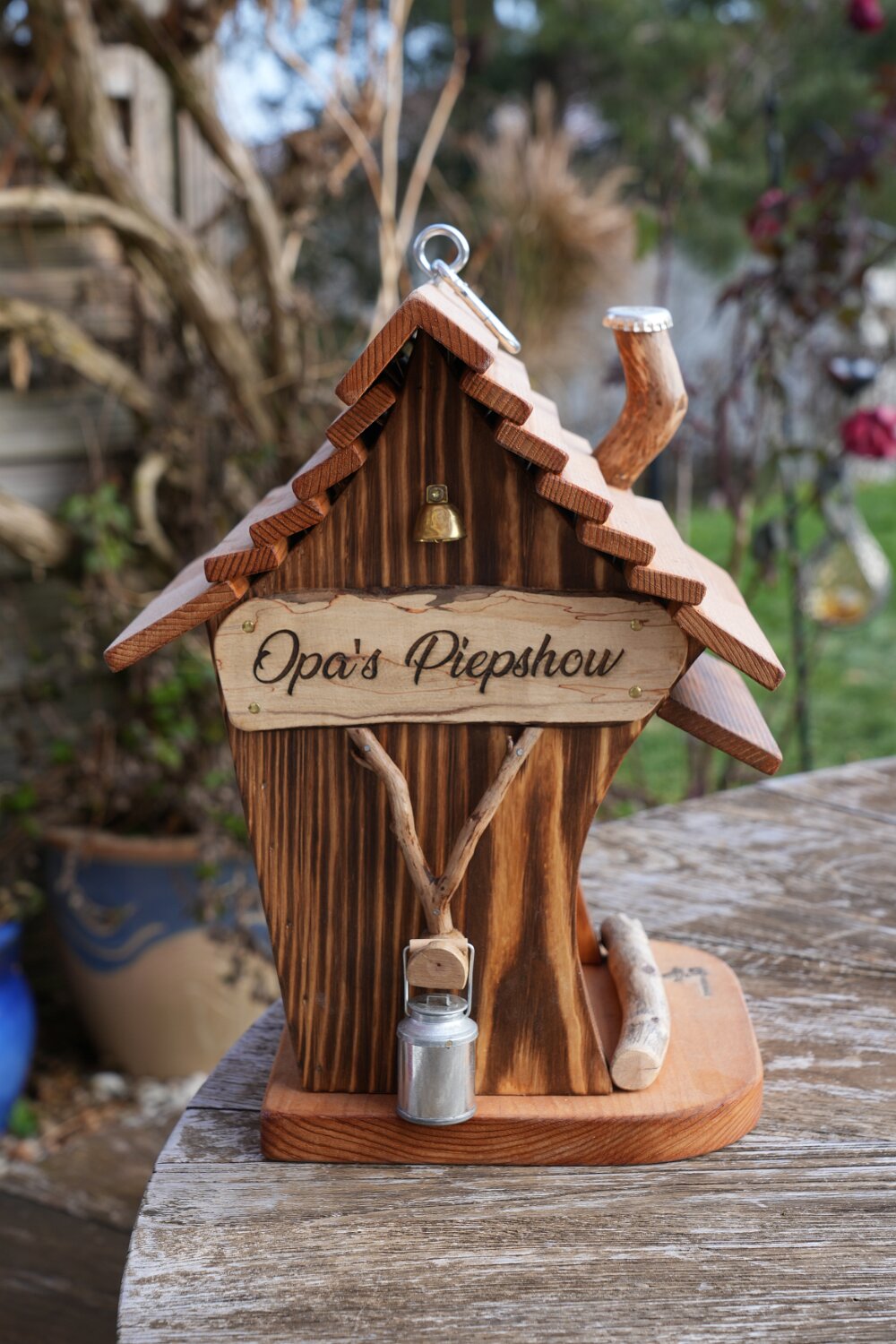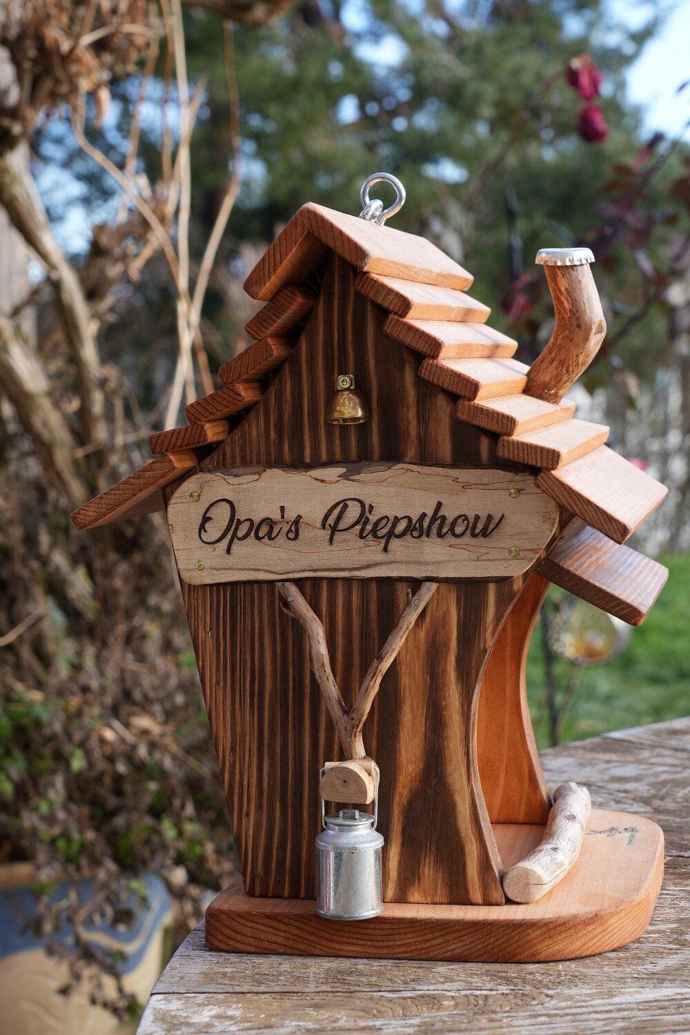 Cheminée, boille à lait, 2 portes et 2 plaquettes bois gravées