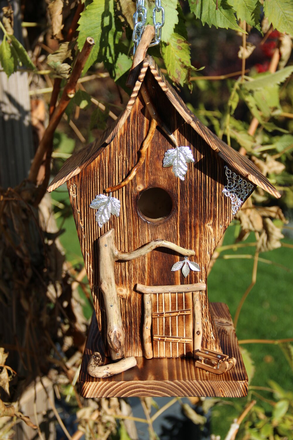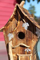 Cabane en bois brossé et vielli pour les faces et uniquement brûlé pour le toit et le fond
